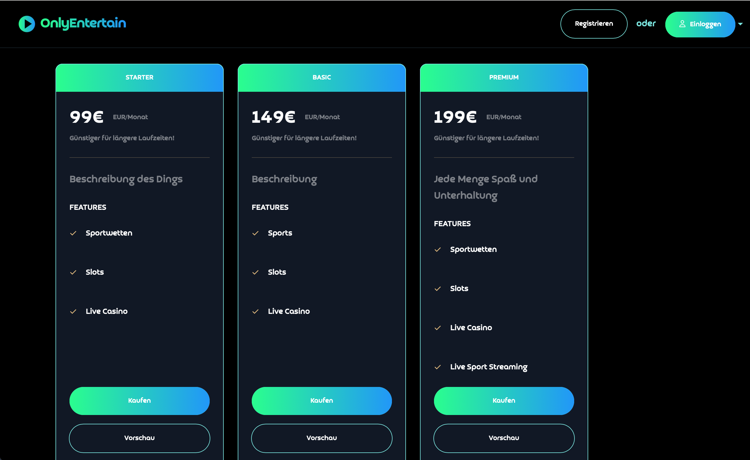 100 % Unterhaltung einfach mieten Spieler verwalten sofort Startklar